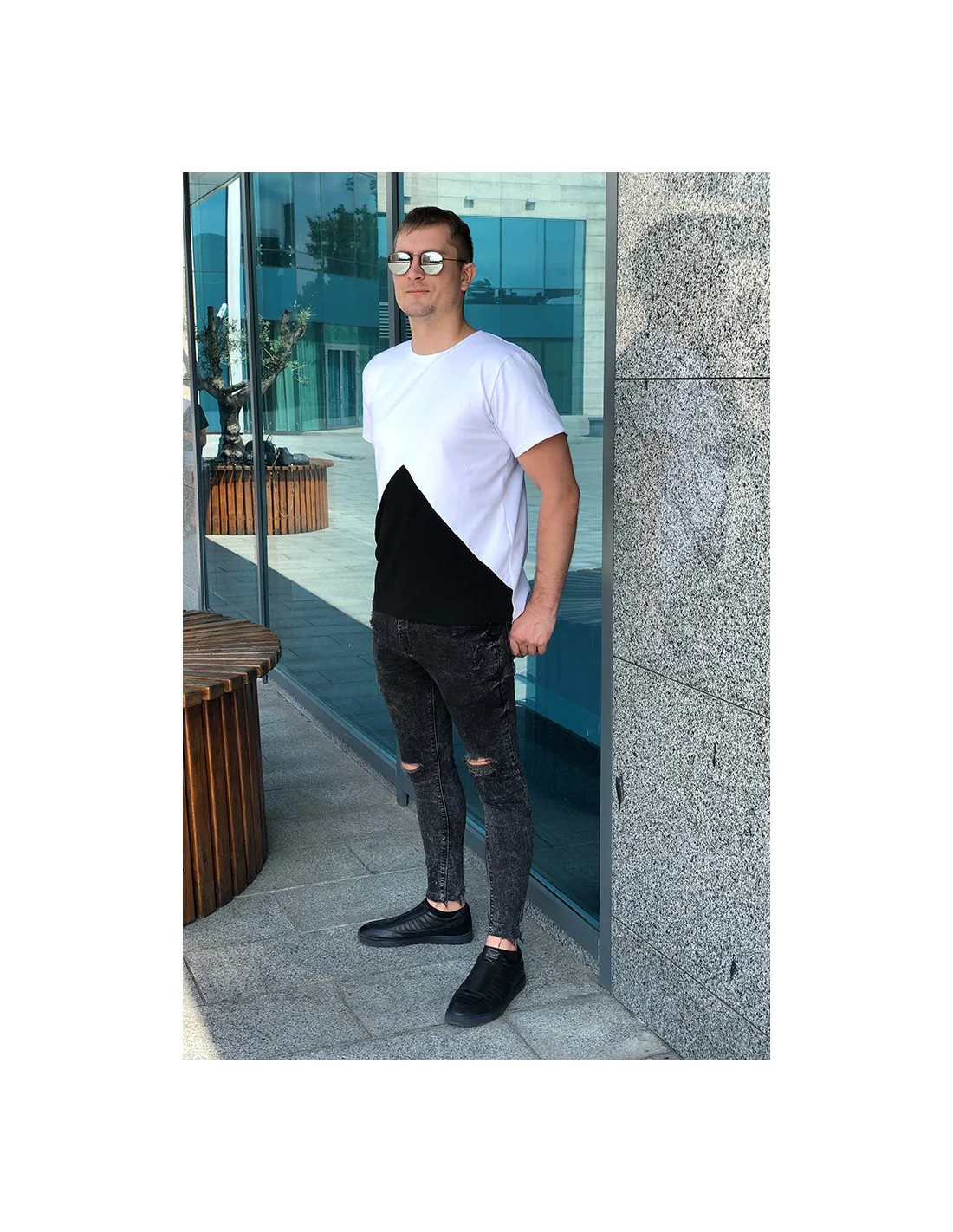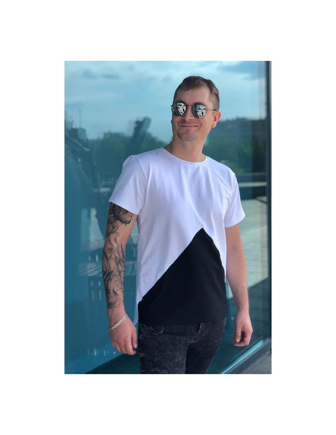 - Дизайн: Чорно-біла гармонія з унікальним чорним трикутником надає футболці стильного та сучасного вигляду.