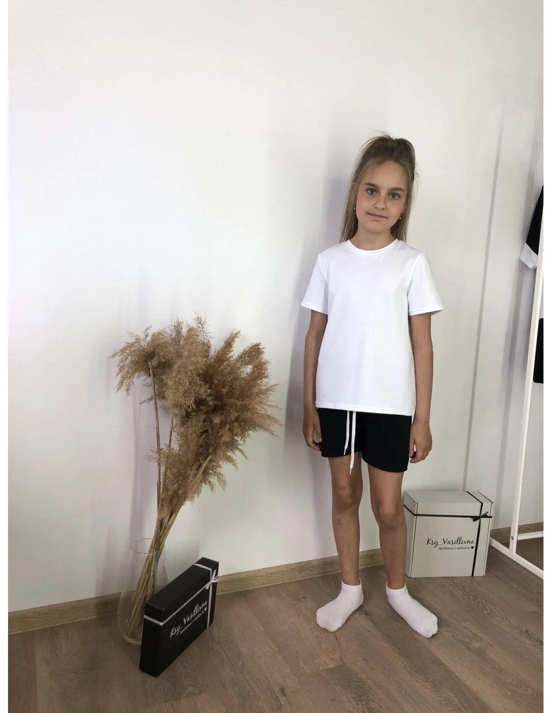 В вашей корзине больше нет товаровКостюм для девочек с черными шортами и белой футболкой