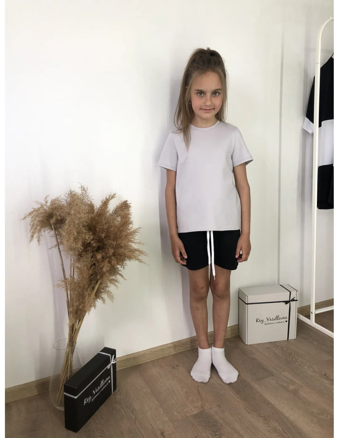 В вашей корзине больше нет товаровКостюм для девочек с черными шортами и футболкой в цвете камень