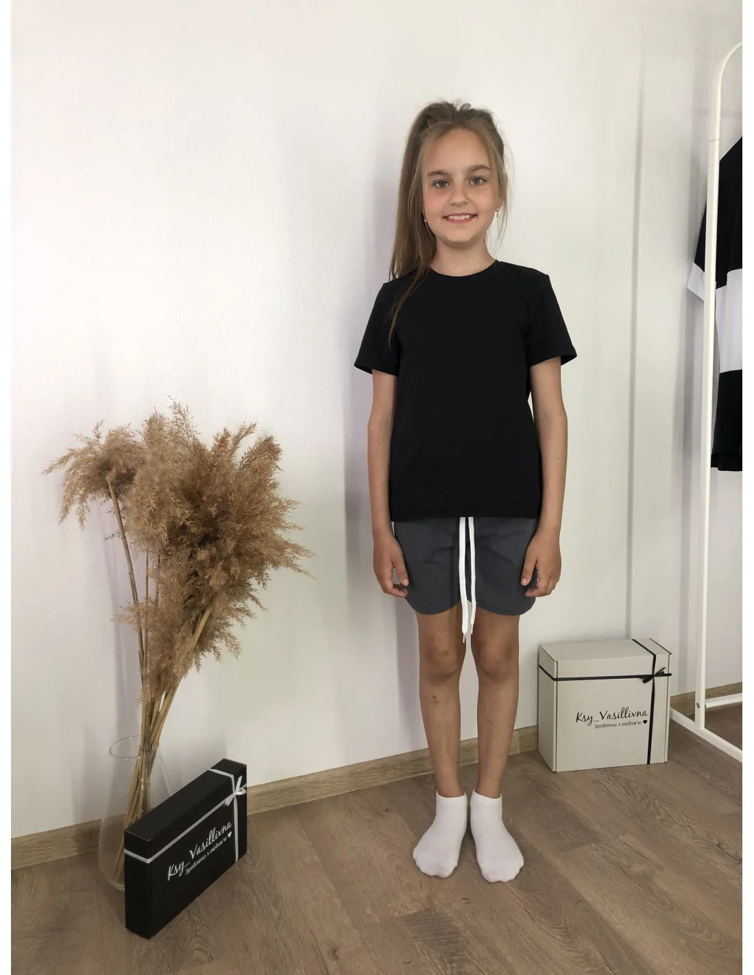 Уникальный образ от Ksy_Vasillivna: костюм для девочек с графитовыми шортами и черной футболкой! 😍🛍️