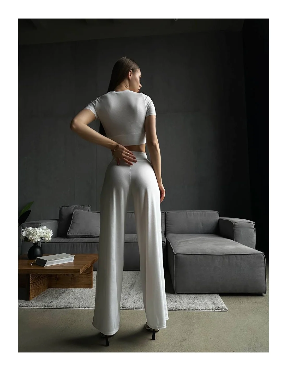 Белый цвет делает этот костюм универсальным для любых сезонов и событий. Вы можете носить его как с закрытыми туфлями и пиджаком для офисного стиля, так и с кедами и футболкой для непринужденного повседневного образа. Этот костюм дарит вам бесконечные возможности для творчества с модой.