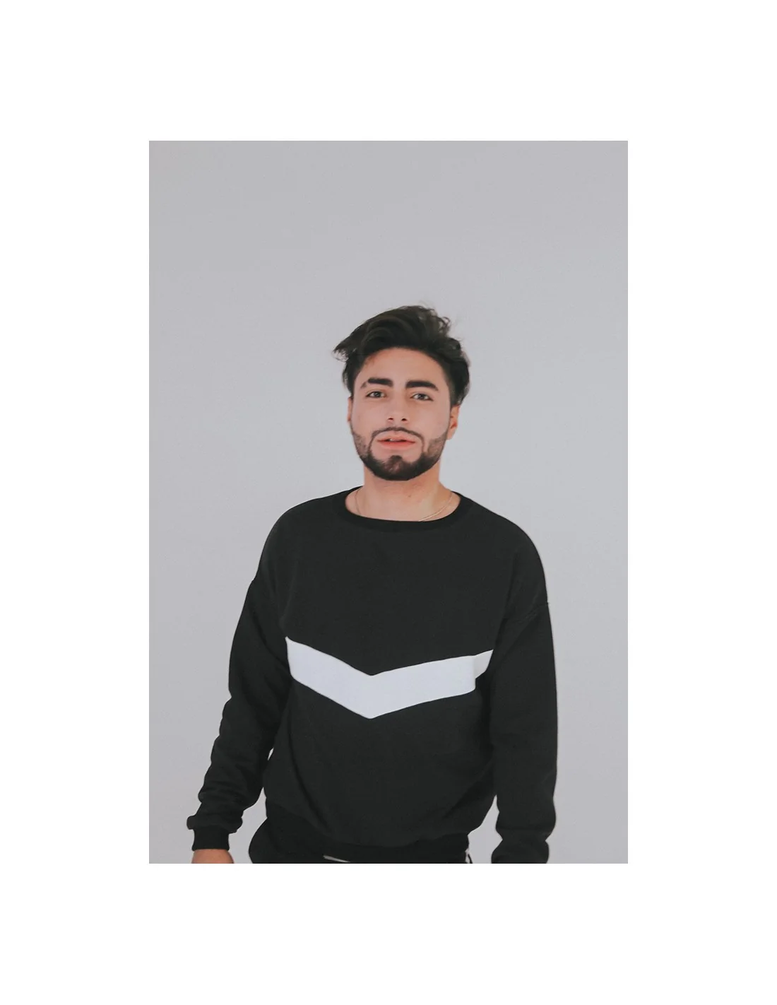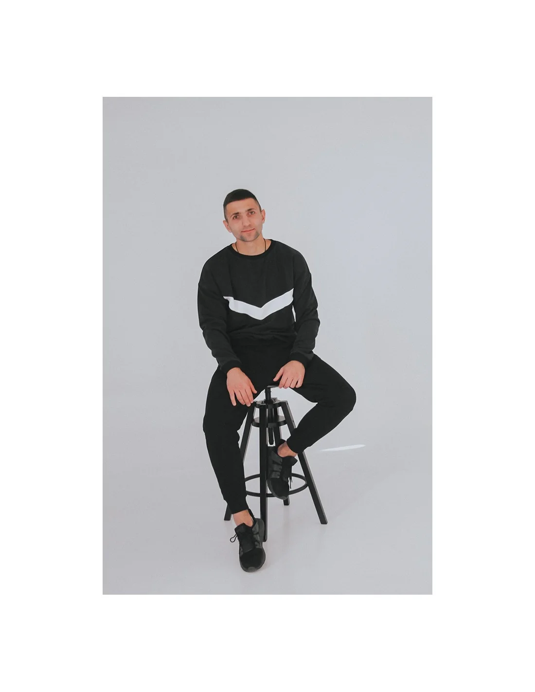 Черно-белая гамма свитшота придает ему элегантный и современный вид. Белая полоса, проходящая по груди, добавляет стильный акцент и делает этот свитшот неповторимым. Этот дизайн подходит как для мужчин, так и для женщин, что делает его идеальным выбором для тех, кто ценит универсальность и стиль.