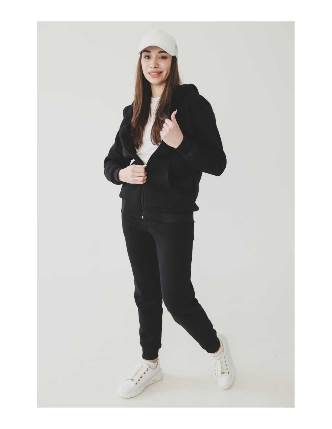 Женский спортивный костюм на флисе, цвет - черный