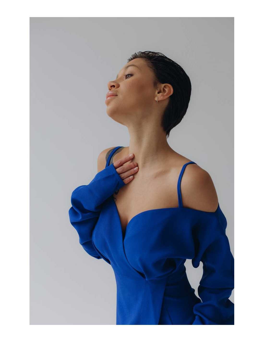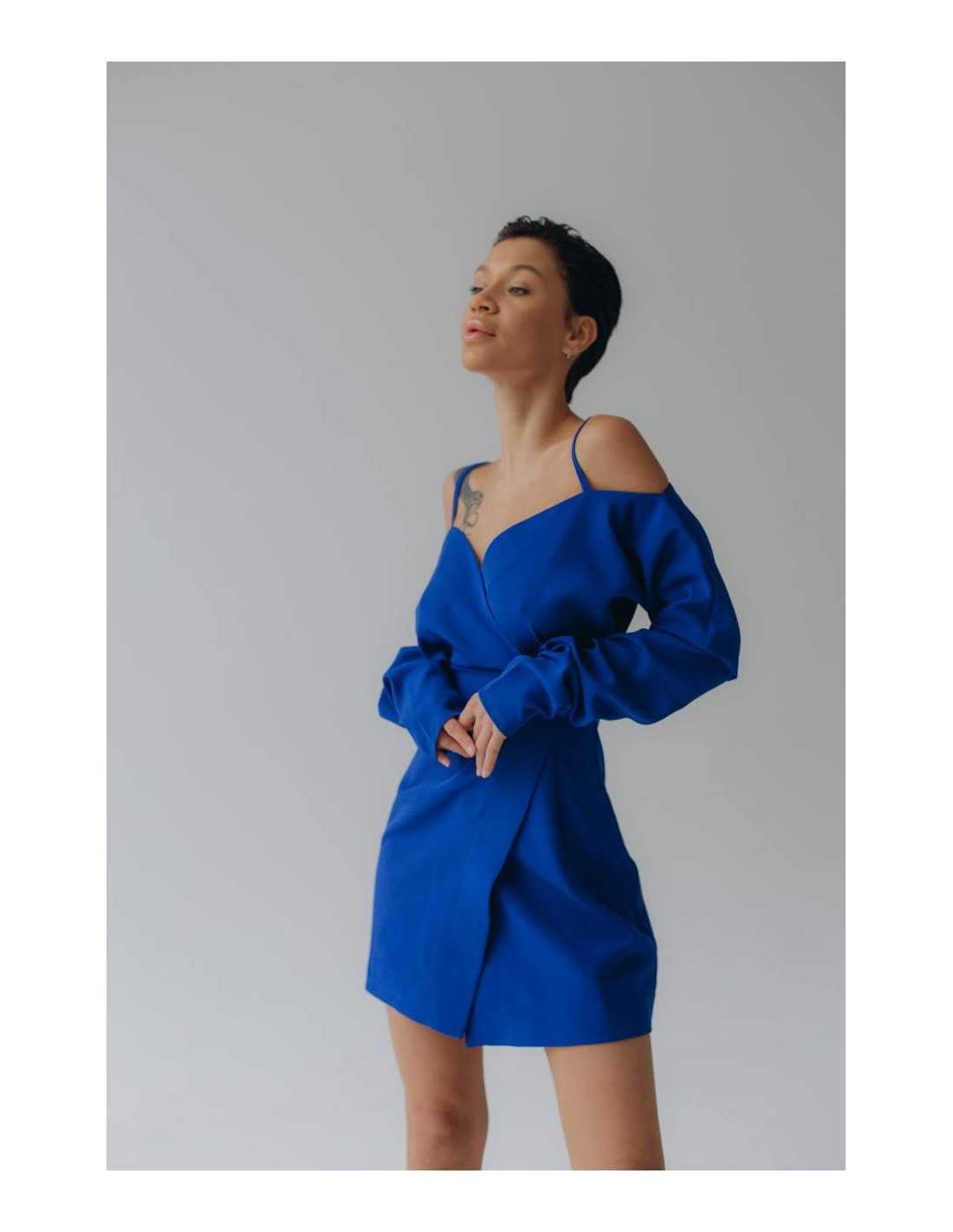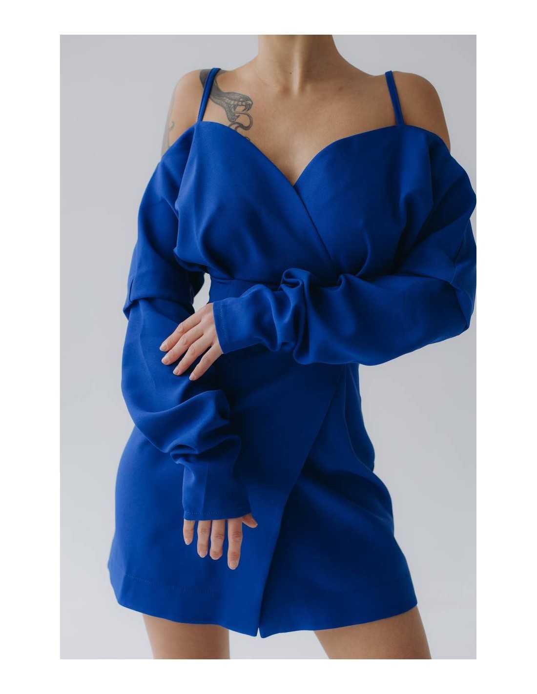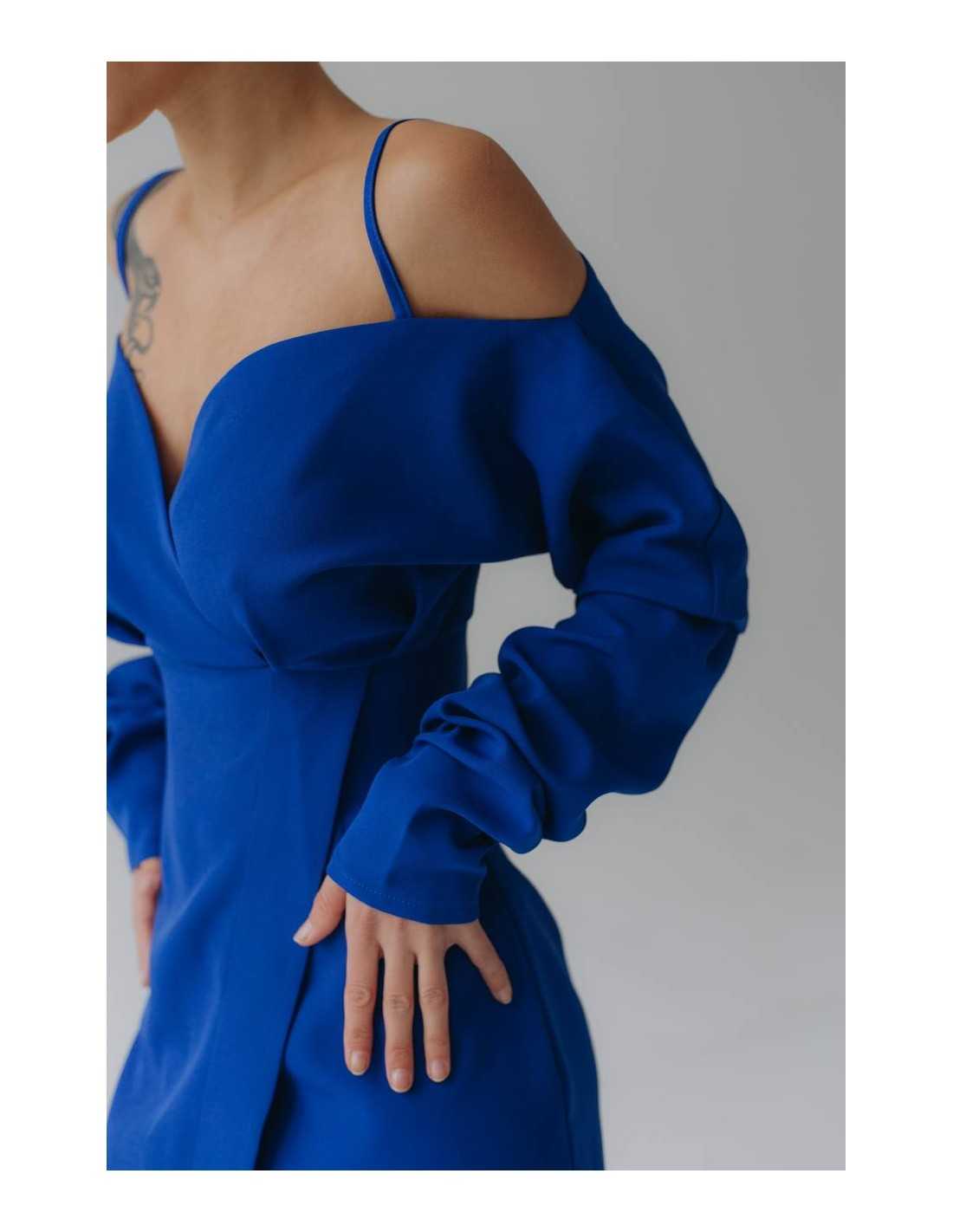 Приветствуем вас в интернет-магазине zbrendom.com.ua! У нас вы можете приобрести стильное и элегантное платье в цвете электрик с обнаженными плечами и вырезом на бретельках. Это платье идеально подойдет для вечеринок и других особых случаев.