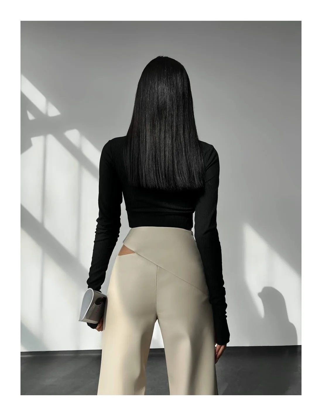 - Стильные Разрезы: Дизайн брюк включает в себя эффектные разрезы, которые придают вашему облику неповторимый стиль и добавляют нотку сексуальности.