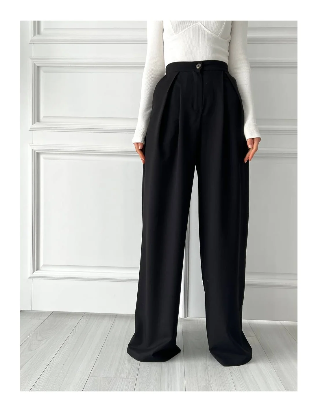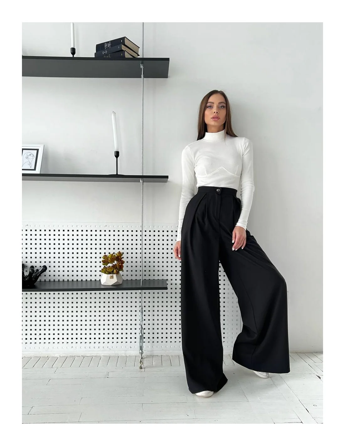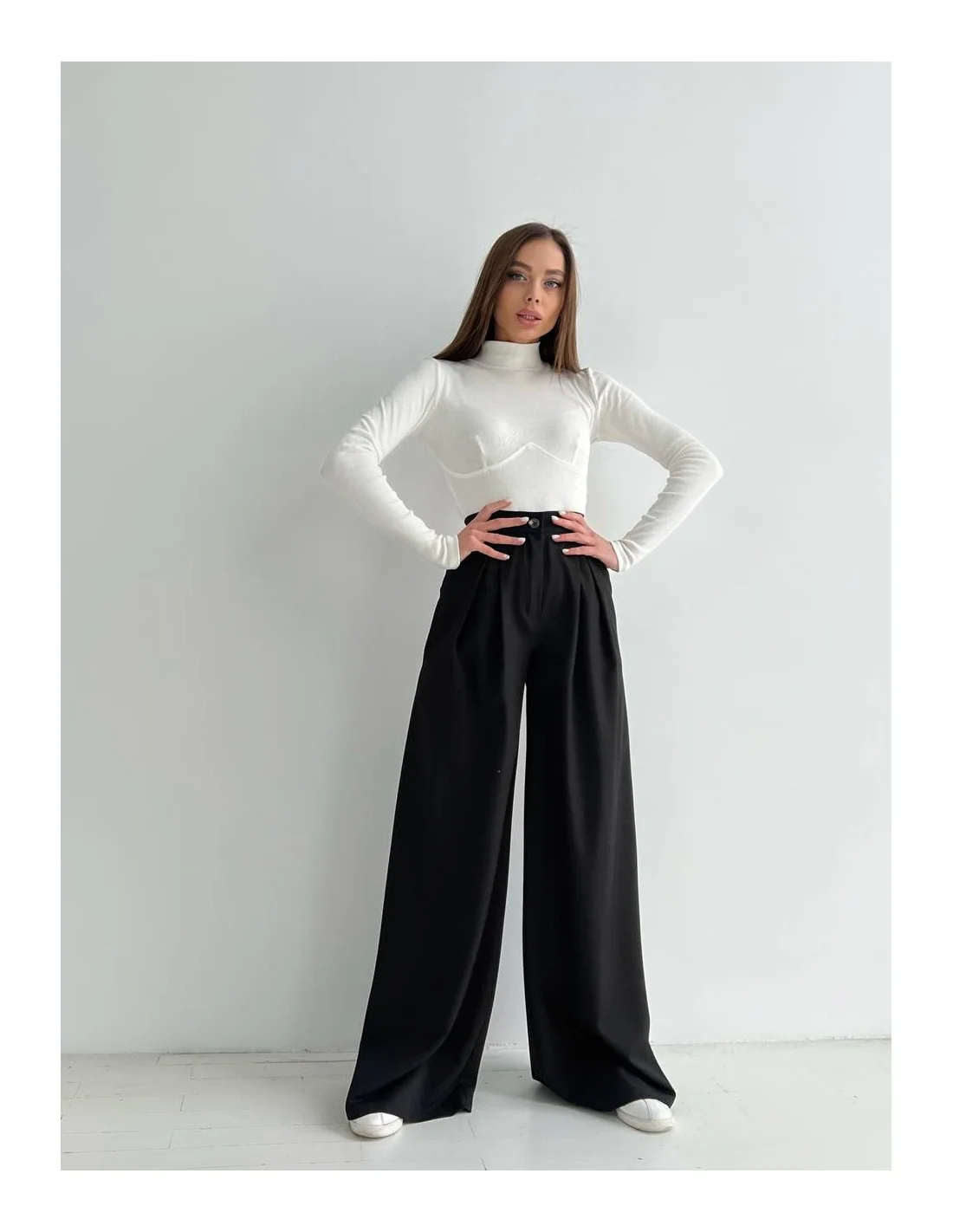 Наши женские брюки палаццо с высокой посадкой в черном цвете - это идеальный выбор для тех, кто ценит свободу движения, комфорт и стиль. Эти брюки позволяют вам выглядеть элегантно в любой ситуации, будь то повседневный образ или особенное мероприятие. Давайте подробнее рассмотрим особенности этого товара: