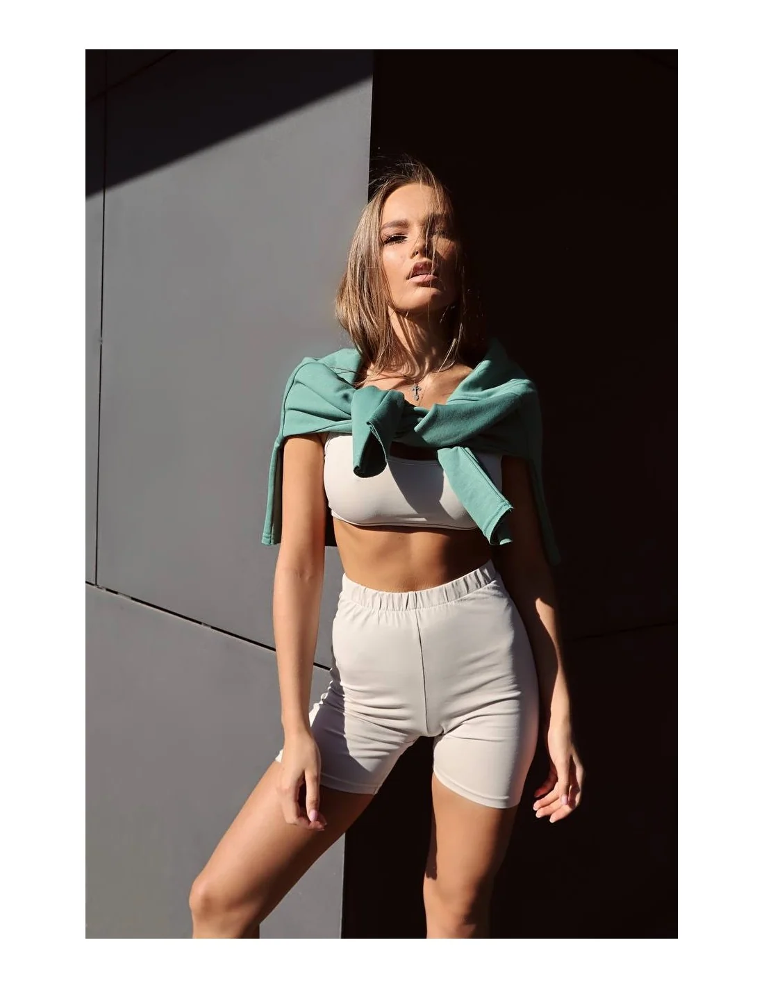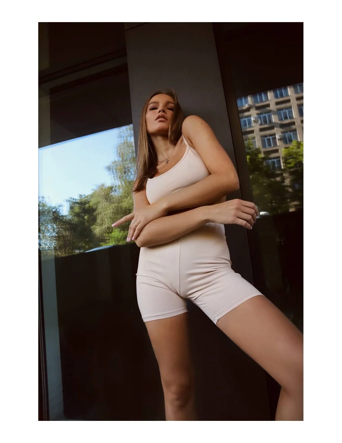 - Велосипедки и топ: Костюм состоит из велосипедок и топа на брительках, что делает его идеальным для активного отдыха, пляжа или прогулок в городе. Велосипедки обеспечивают максимальный комфорт и свободу движений, а топ создает легкий и стильный образ.