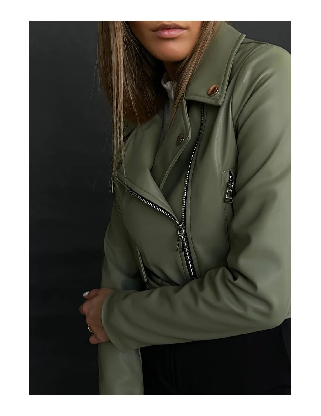 Мы гордимся тем, что предлагаем вам продукт высшего качества, который сочетает в себе стиль, комфорт и уникальность. Наша женская кожаная куртка с оливковым цветом - это не просто одежда, это выражение вашей личности и неповторимого стиля.