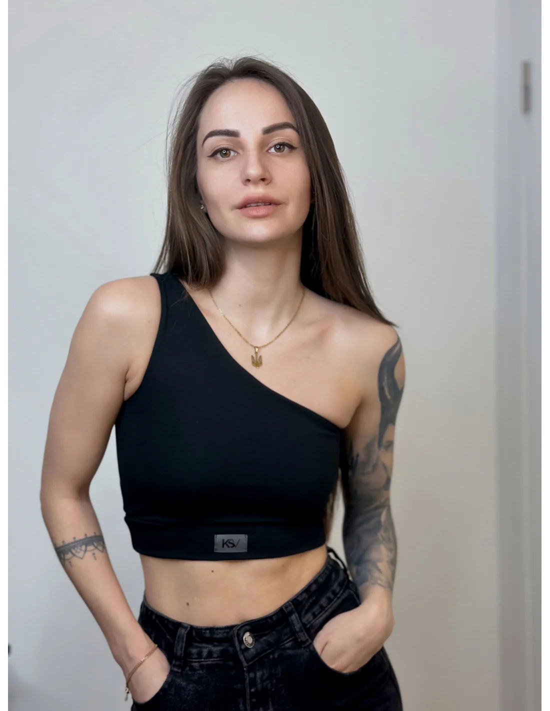 Добро пожаловать на zbrendom.com.ua, где мода сочетается с качеством от украинского бренда Ksy_Vasillivna! Представляем вашему вниманию эксклюзивный топ в черном цвете, который станет неотъемлемой частью вашего гардероба.