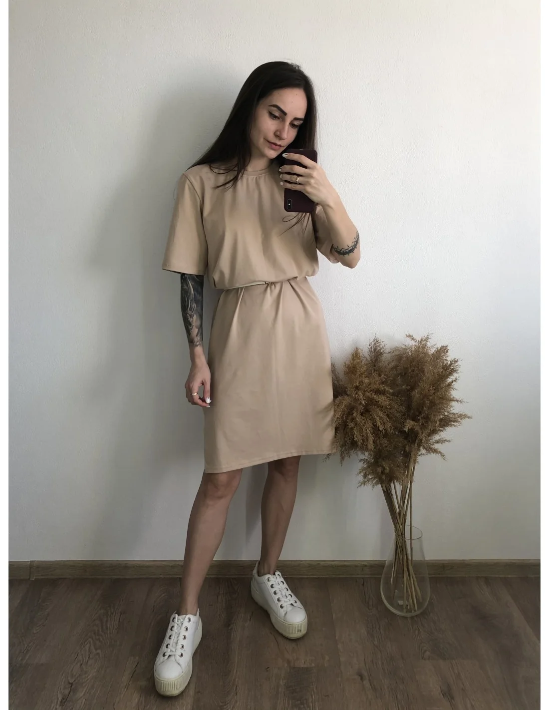 - Бежевый цвет: Бежевый - это универсальный цвет, который подходит к любому стилю и легко сочетается с другими оттенками. Это платье станет идеальным дополнением к вашему гардеробу.