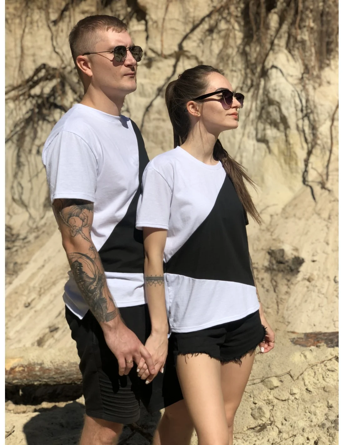 Футболка черно-белая Classic UNISEX с черным треугольником сбоку