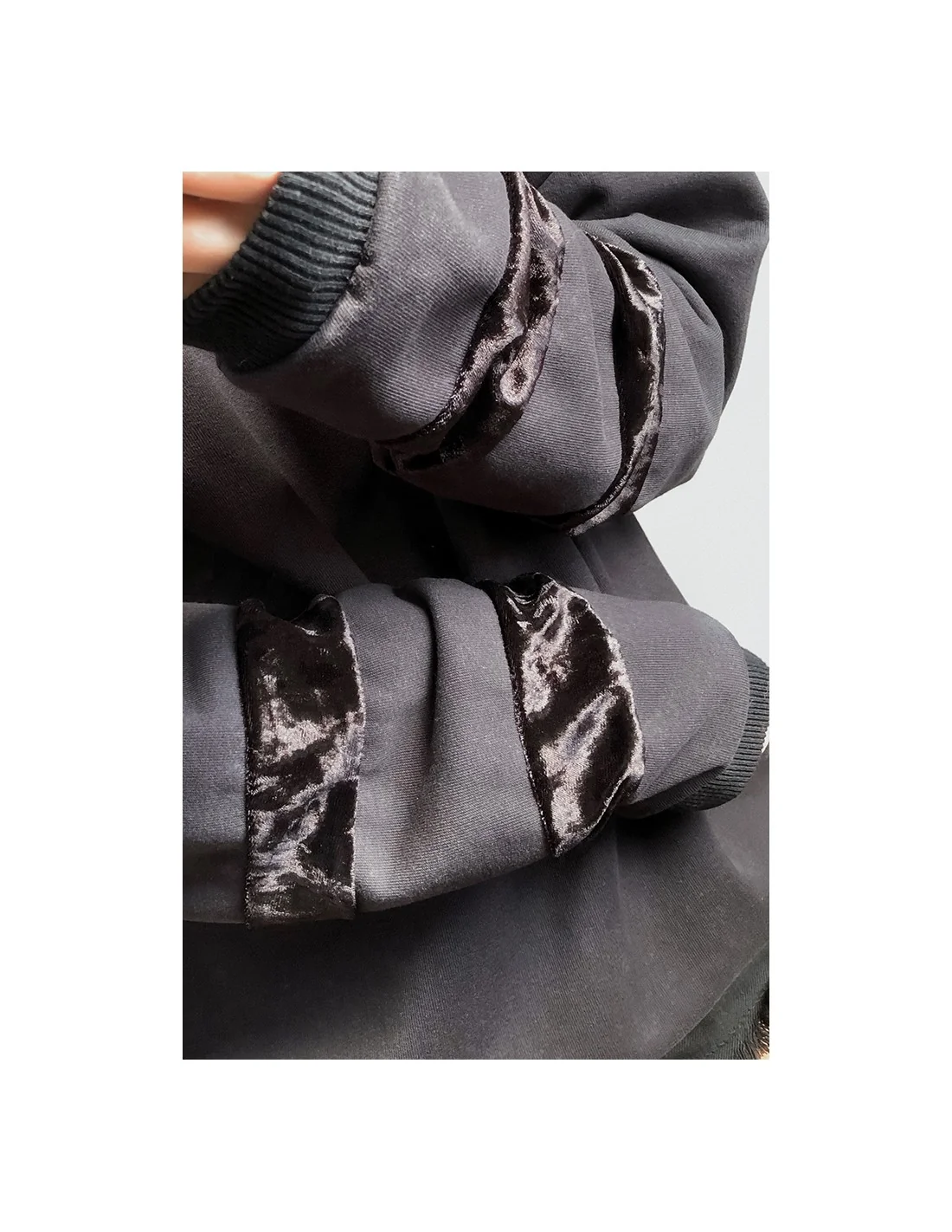 Жіночий світшот представлений з елегантною вставкою з чорного оксамиту по рукавах, що надає виробу особливого шарму. Цей дизайн покликаний виділити вас із натовпу та підкреслити вашу унікальність.