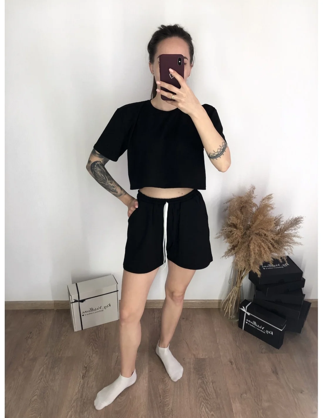 👗 Опис: Втомилися від вічних сумнівів, що одягнути щодня? Рішення просте – обзаведіться стильним та зручним костюмом від українського бренду ZBrendom! Наш чорний костюм, що складається з кроп-топу та коротких шортів, стане ідеальним рішенням для вашого гардеробу.