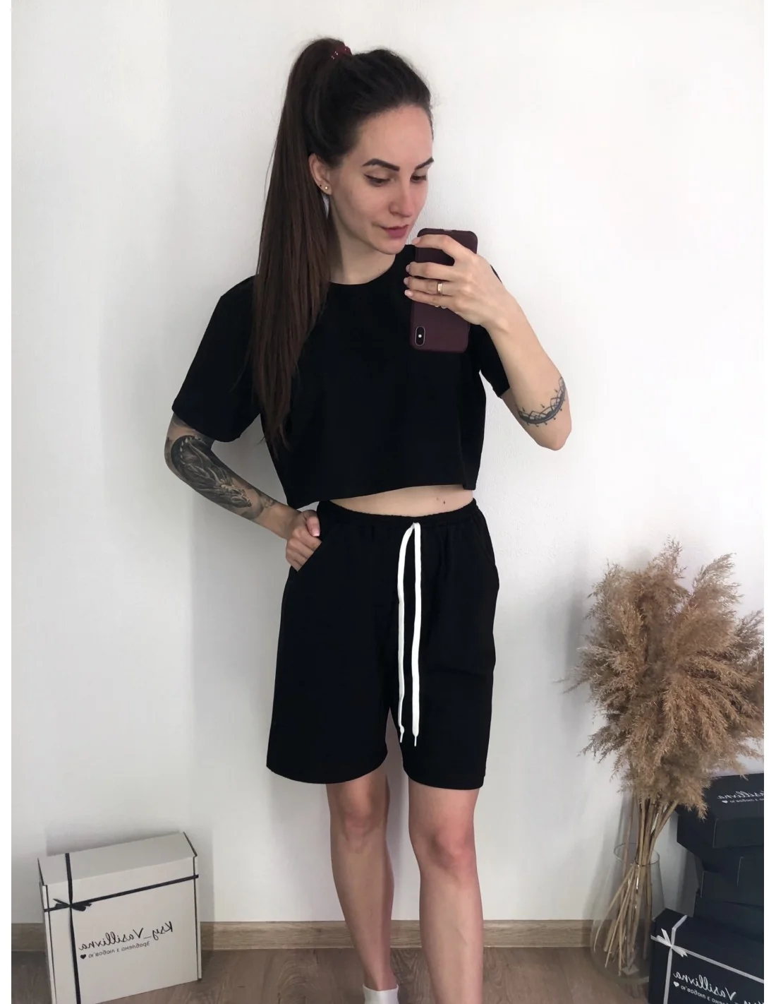 - Чорний колір та мінімалістичний дизайн роблять костюм універсальним та стильним.
