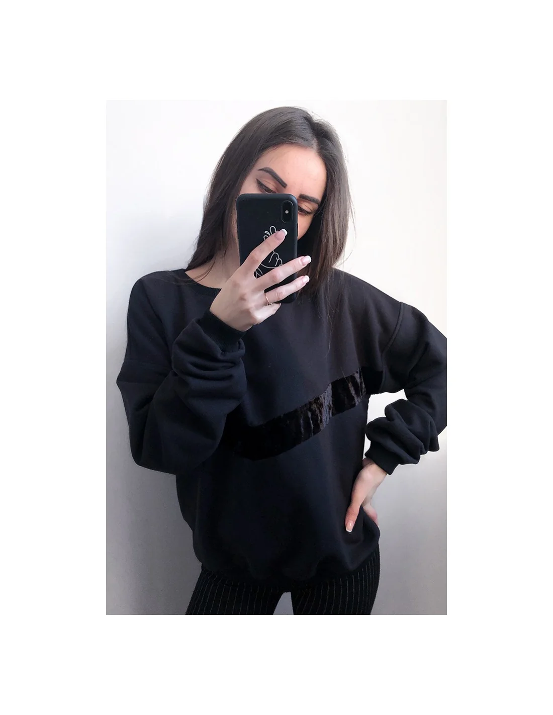 - Модний дизайн: Вставка з чорного оксамиту робить цей світшот яскравим акцентом вашого образу.