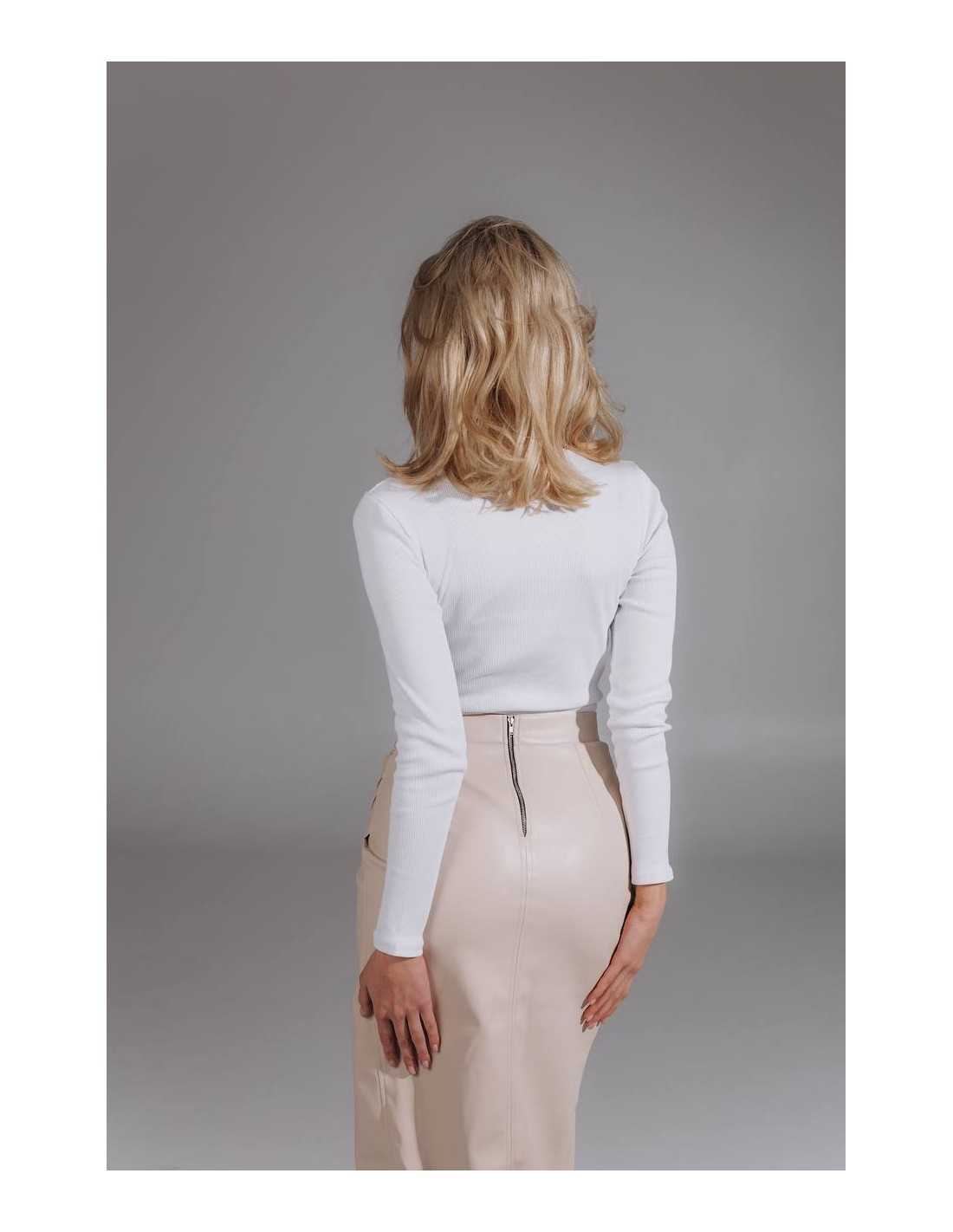 Спідниця з еко шкіри в кольорі слонова кістка на замші