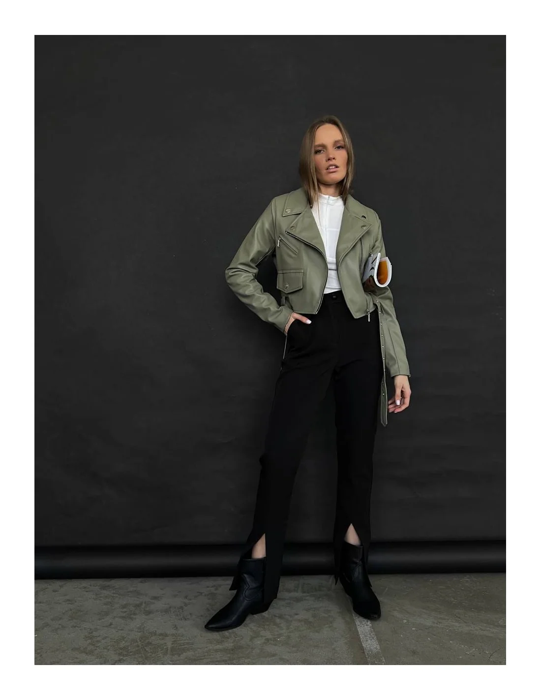 Ми пишаємося тим, що пропонуємо вам продукт найвищої якості, який поєднує в собі стиль, комфорт та унікальність. Наша жіноча шкіряна куртка з оливковим кольором - це не просто одяг, це вираз вашої особистості та неповторного стилю.
