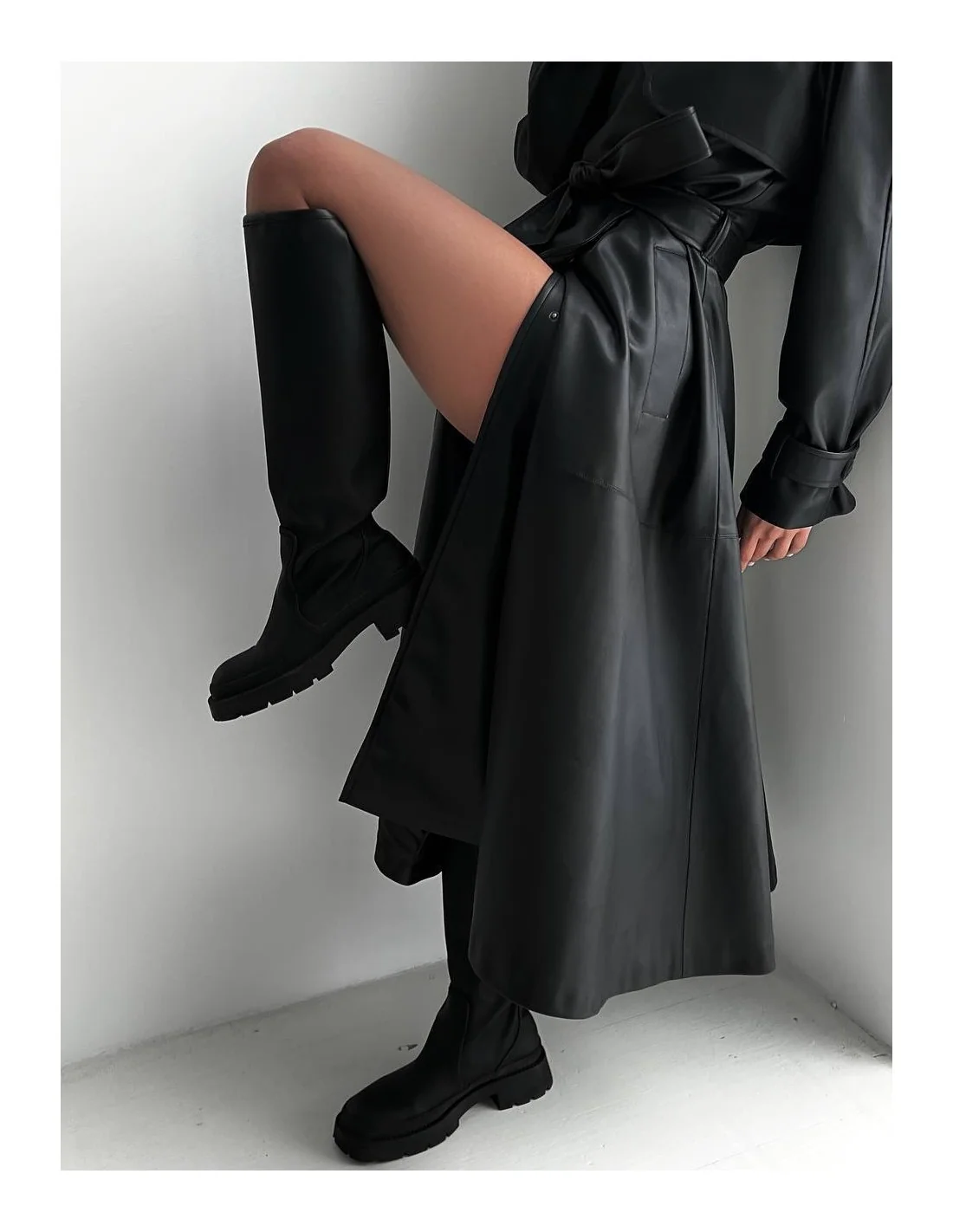 - Зручність та комфорт: Наш тренч виконаний з високоякісної еко-шкіри на замші, що забезпечує не тільки стильний зовнішній вигляд, але й зручність у носінні. Цей матеріал легкий у догляді та довговічний.