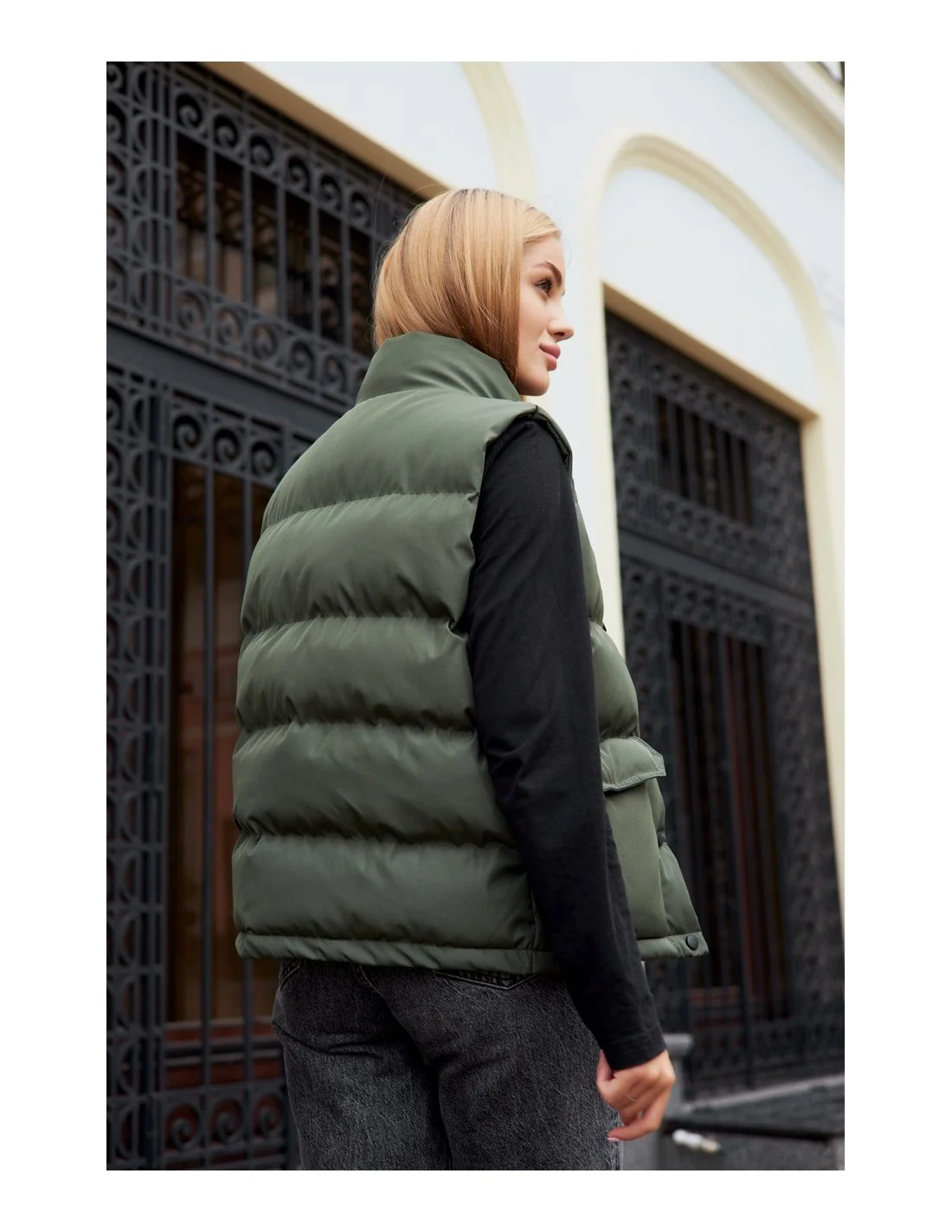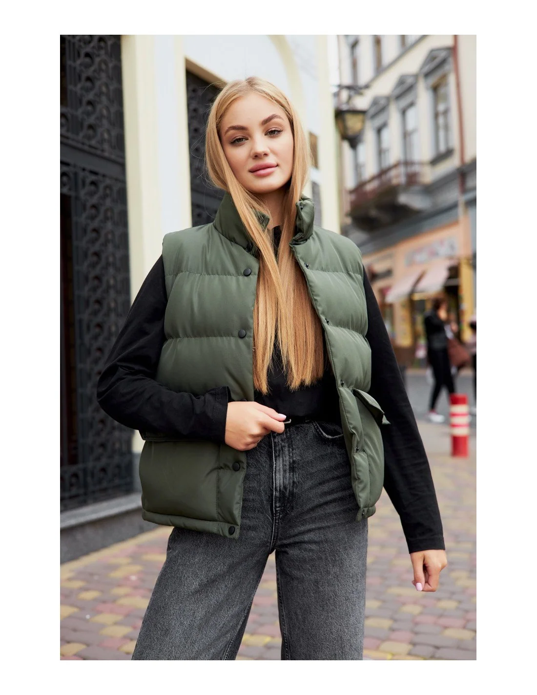Стильний жилет у кольорі хакі легко поєднується з різними вбраннями, будь то повсякденна цибуля або вечірнє вбрання. Вона стане незамінною частиною вашого гардеробу і допоможе вам виглядати модно та оригінально.