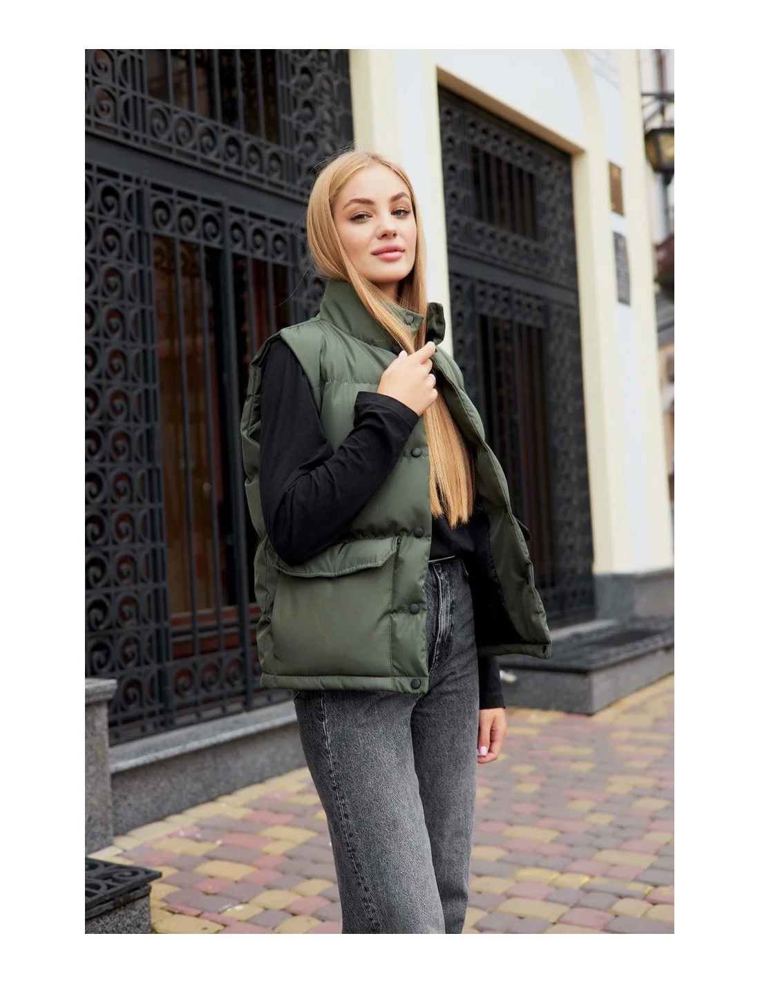 - Стильний дизайн: Жилетка має сучасний та елегантний дизайн, який легко поєднується з різними вбраннями. Її хакі-колір додасть нотку оригінальності у ваш образ.