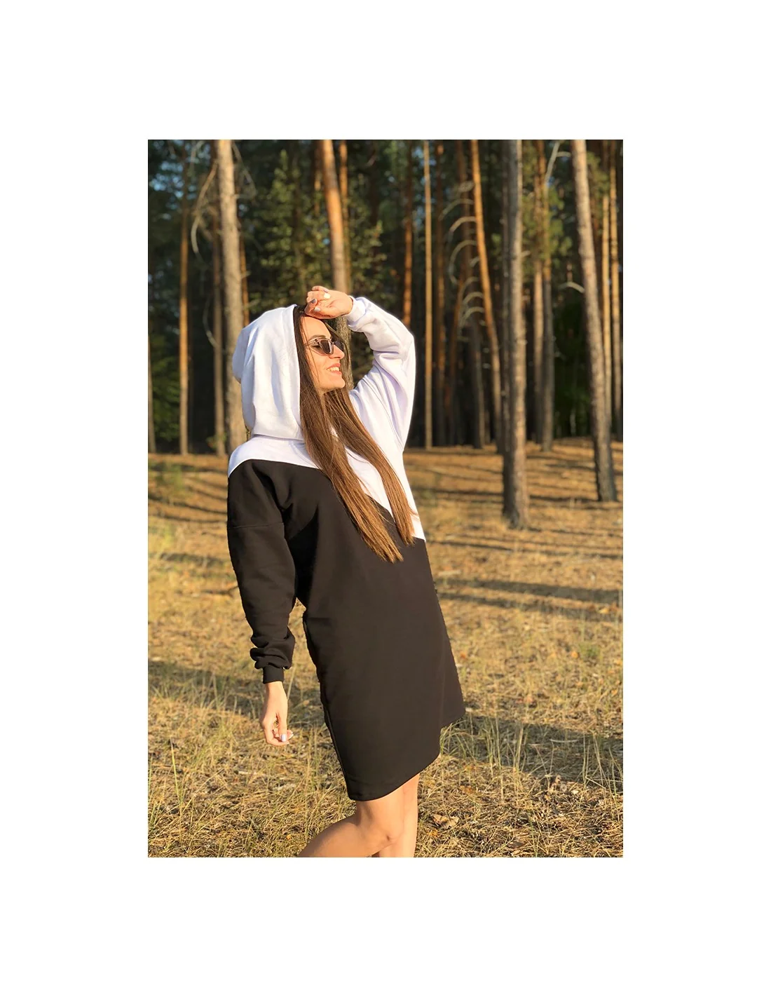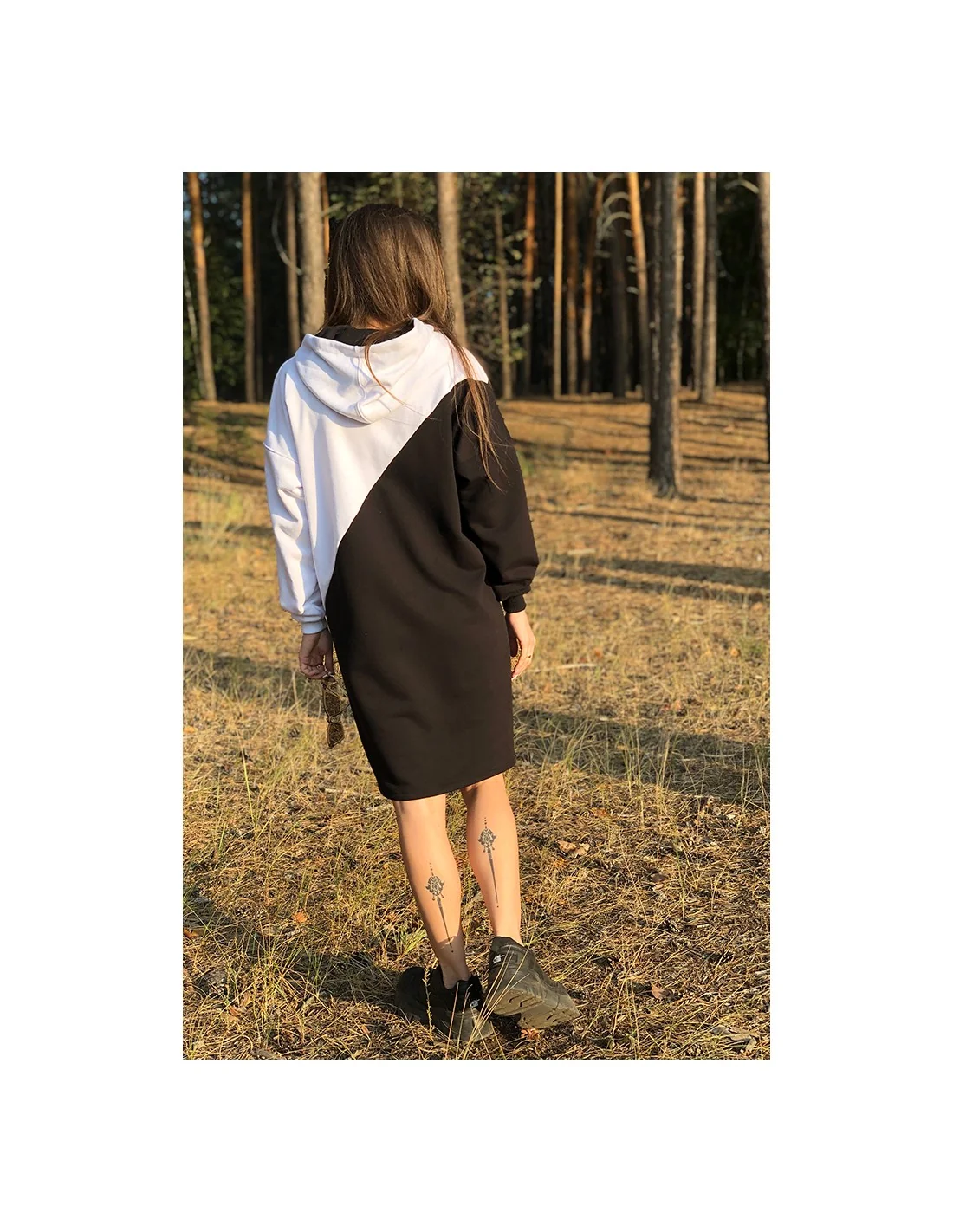 Що робить наші сукні-худі такими унікальними? Це поєднання частин, які, начебто, несумісні. Капюшон і сукня, спортивний стиль та жіночність, чорно-біла гама та худорлявість – всі ці компоненти об'єднані в одному предметі, щоб створити справжній шедевр дизайну. Носіть його у охолодні осінні дні, холодні зимові ранки або прохолодні весняні вечори – це сукня ідеально підходить для трьох сезонів.
